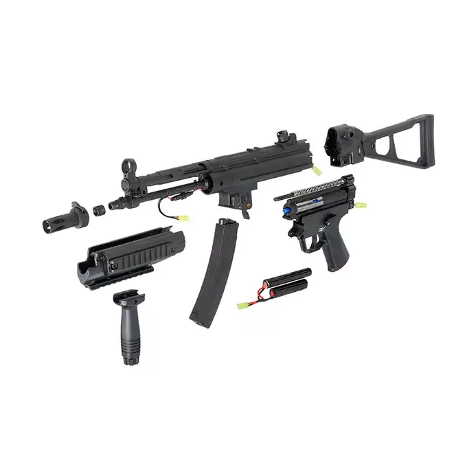 Diese wunderschöne M5 ist elektrisch betrieben, darf nur semi-automatisch schießen und nur an Personen abgegeben werden, die das 18. Lebensjahr erreicht haben, da ihre Energie über 0,5 Joule liegt. Zum Kauf wird daher ein Altersnachweiß benötigt. Zum Betrieb wird ein LiPo-Akku und Munition benötigt. Selbstverständlich können ab Werk oder auch durch das Testen oder in manchen Fällen verändern der Waffen durch unsere Werkstatt minimale Kratzer an den üblichen Stellen entstehen. Wir bitten dies zu entschuldigen und beim Kauf zu berücksichtigen.