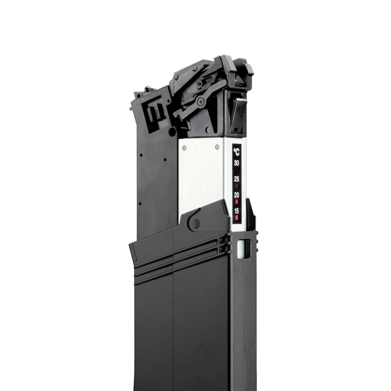Magazin: Die Schrotflinte wird mit einem Magazin aus Kunstharz geliefert, das 45 BBs aufnehmen kann. Die innere Oberfläche des Gastanks verfügt für zusätzlichen Komfort über eine Temperaturmessdichtung.